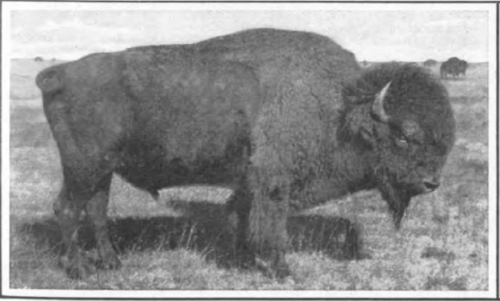 True, the herd is small, only seven animals, and it is one of the few remaining in the nation today, but the sight of the humped backs and lowered heads grazing among the mesquite on the Virgil Linam ranch is still a reminder of the vast open land of the old days.