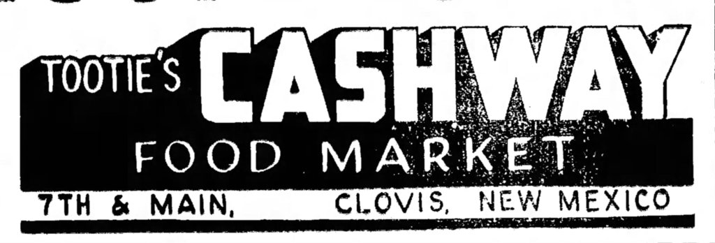 Around 1950, Tootie opened up his first retail grocery stores in Hobbs and called them Tootie’s Cashway. A 1952 article in the Lovington Leader announced the remodeling of their Hobbs store giving it the largest floor space of a grocery store in Hobbs. It offered not Green Stamps but Pacific Stamps.